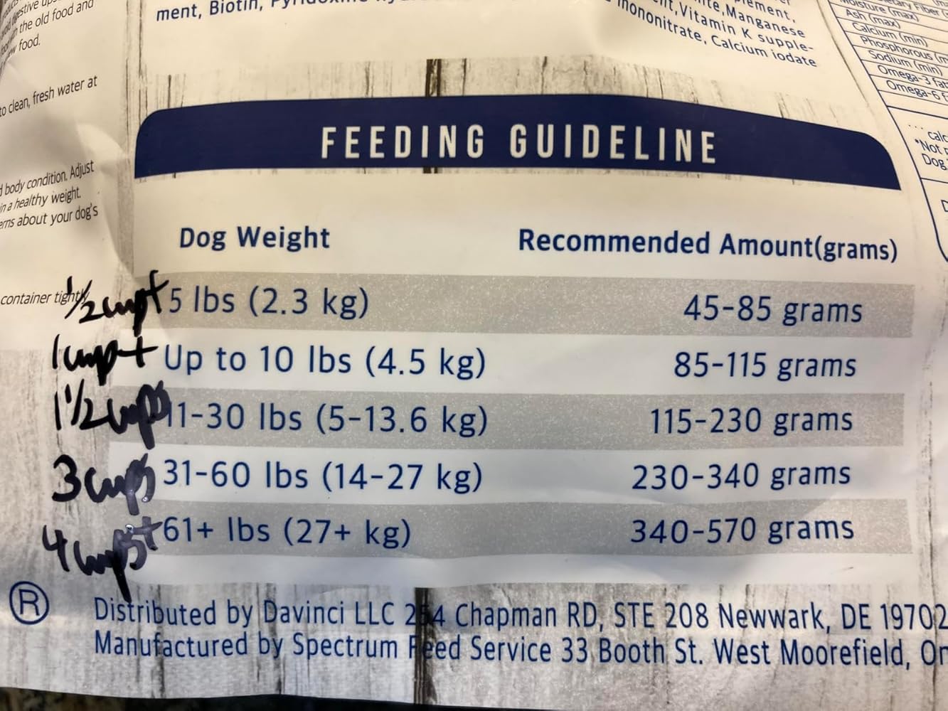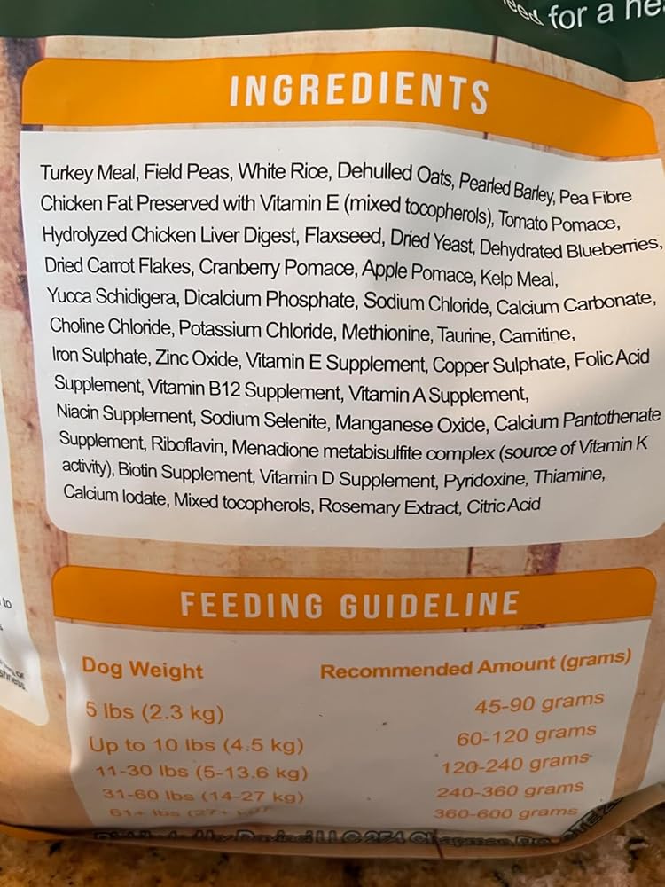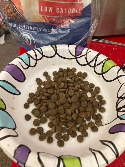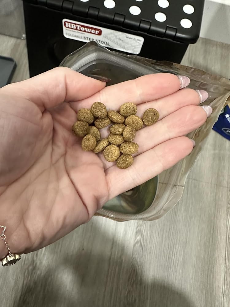 I’ve gotten over the sticker shock of a great dog food. It seems that really healthy ingredients do add up. And I LOVE that salmon is the first ingredient here. I appreciate the 30% protein here because that is what doggies were meant to run on - protein. But personally I believe they need more protein but it doesn’t have to be at a regular meal. I up the protein from this kibble with single ingredient, high protein snacks. For more diversity in their diet, I’m using this kibble once a day for our finicky eater. For her other meal, I am using another food that has more raw, dehydrated food in it. And additionally our 15 year old 35 pound doggie gets plenty of vegetables for snacks and table food as well. I believe this diverse diet has kept her going longer than most doggies and I want to have her as long as I can.I value that 99% of the ingredients are from Canada because that area is just more clean in most ways compared certainly to the city I live in!I did the math for you below on the second photo for those of you who would like it. This bag is 3.3 pounds. So, you look at the weight of your doggy and see how much food you would give to your dog per day if they are to receive just this food each day.Overall, I’m very happy with this food and as you can see she loves it!🥰