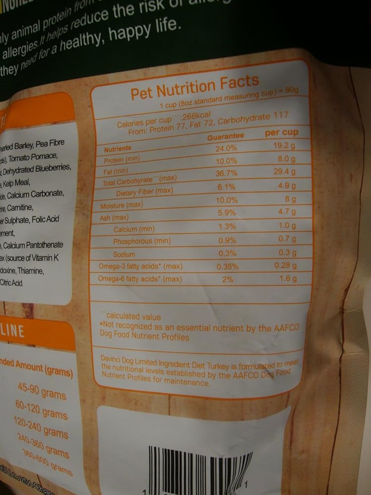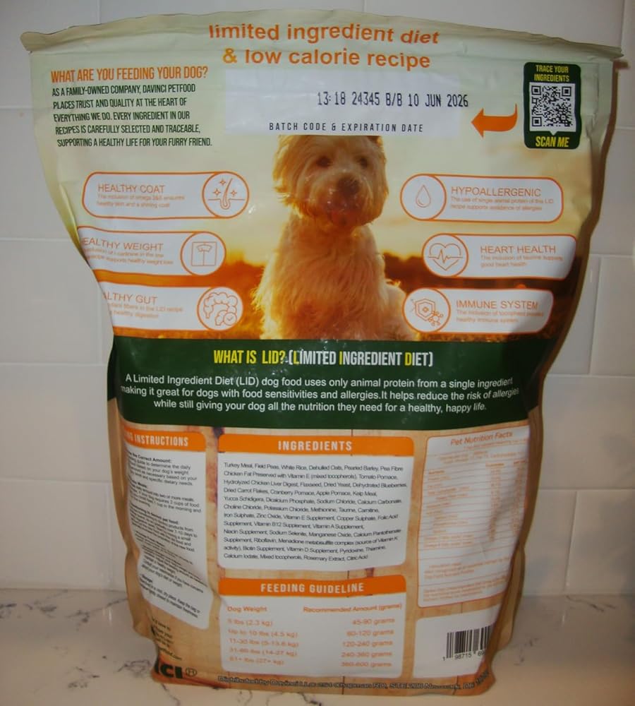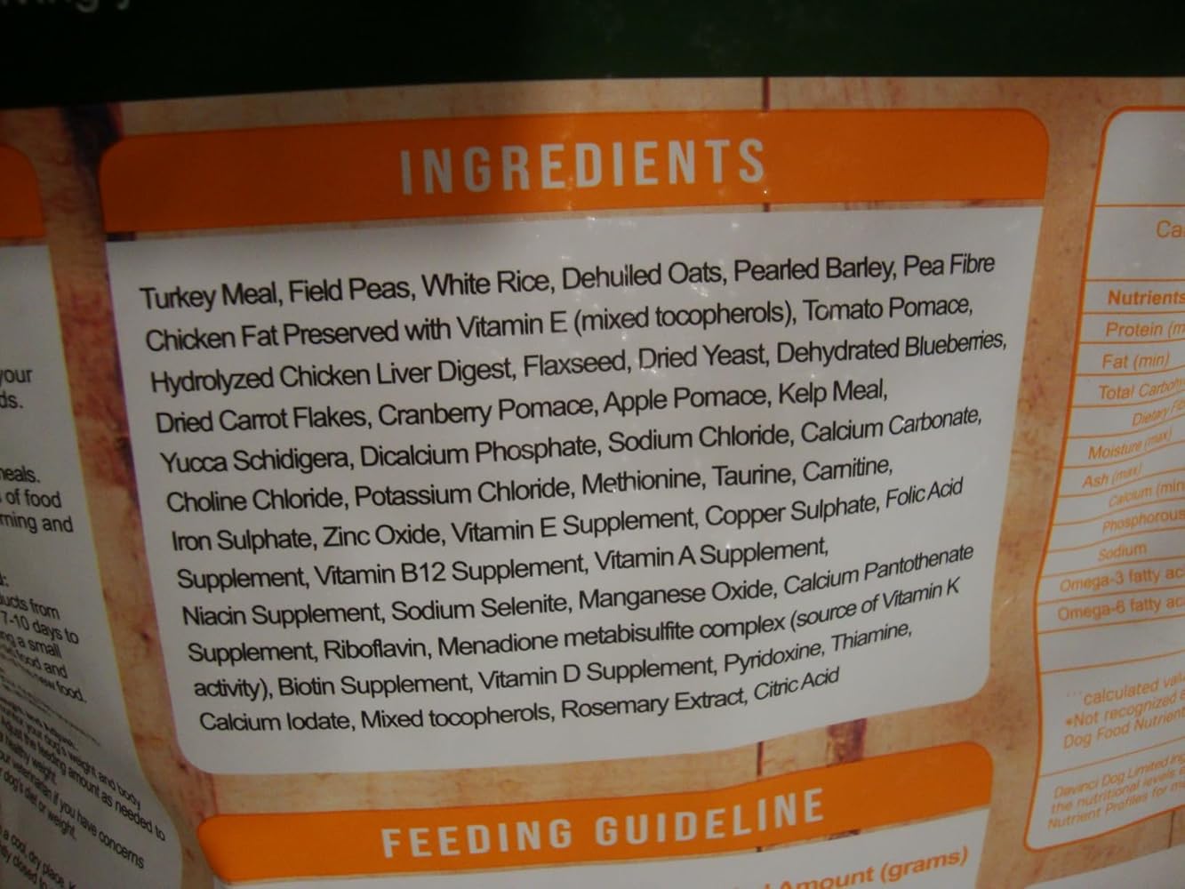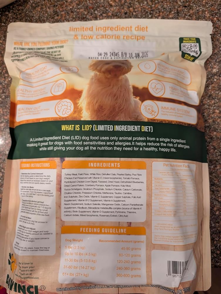 I am always concerned about the ingredients in the big box brand dog foods, recently heard about Davinci and decided to give it a shot. My puppers just finished her first bag of Davinci LID Turkey and we are both very satisfied with the product.I really enjoyed being able to look-up the batch code on the website to see exactly what ingredients were used and when it was made. My pup loved the taste, which is amazing given how picky she is with her food. Anything she doesn't like in her bowl, she'll carefully pick out and leave on the floor next to it. Not a problem with this food.Don't often leave reviews, but this time it was worth it. If you have a picky pup and are worried about what's going into their bowl, Davinci is worth a shot.