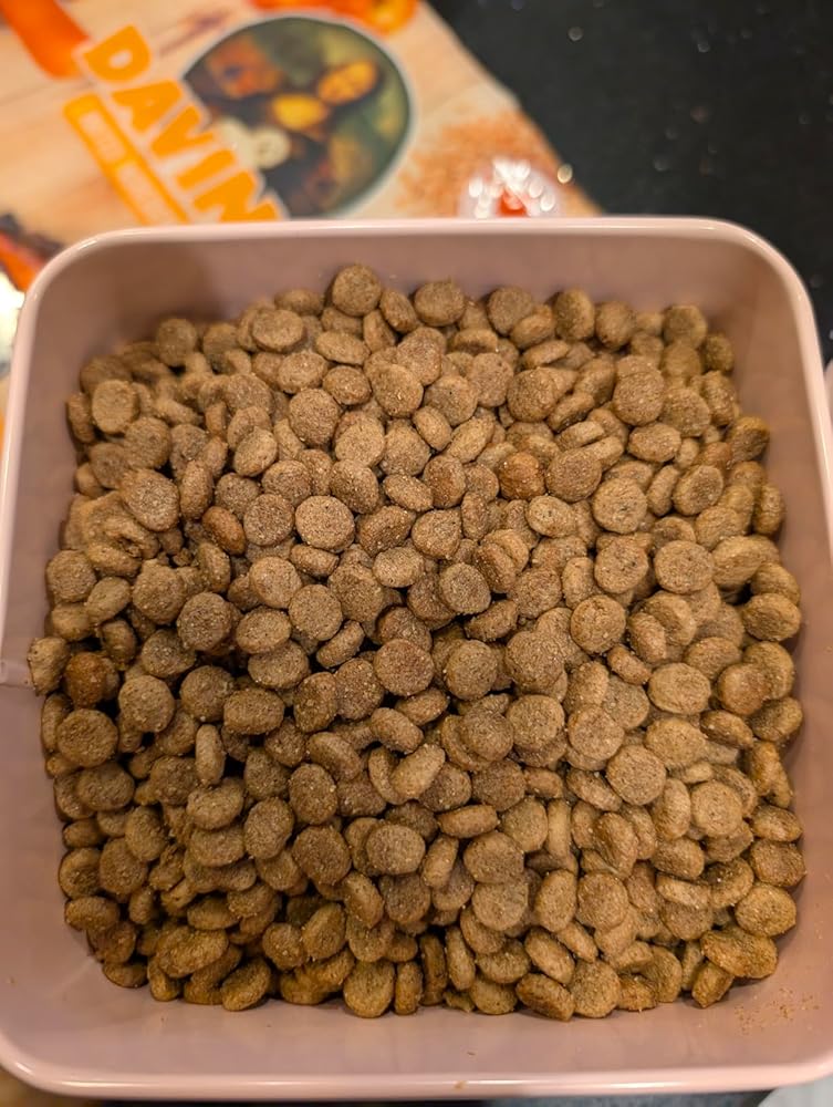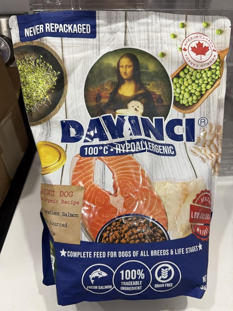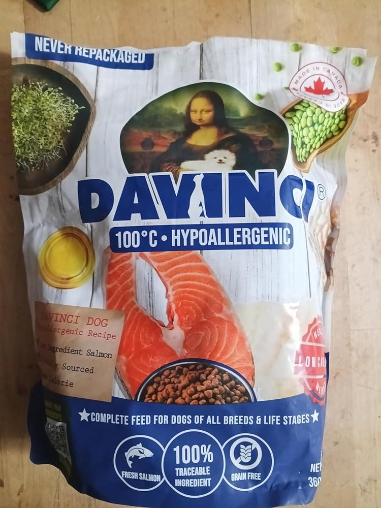 The Baked Salmon Dog Food by Davinci stood out because of its gently baked, low-heat preparation promising a less processed option than standard kibble. After testing it for several feedings with my poodle, here’s what I found:This is a dry, gently baked food that still handles like kibble but feels less processed, and I ordered it to find something more wholesome without the cost of freeze-dried meals. The kibble pieces are firm, low-odor, and uniform, and the bag lists ingredients like salmon, flaxseed, antioxidants, peas, and prebiotics. My dog showed immediate enthusiasm—enough to try counter surfing for the sample I took the picture of when I stepped away—which says a lot about the flavor appeal.In actual use, the food was easy for my dog to digest. He typically doesn’t have stomach issues, but this didn’t create any new ones, and the transition was smooth. I appreciated that the smell was mild and that it didn’t leave oily residue behind, which is common in some richer salmon formulas. It feels like a meaningful improvement over standard high-heat kibble, though it still isn’t as nutrient-dense as freeze-dried diets, so expectations should match that middle position.As for drawbacks, this is still a dry food with the same storage profile as kibble, and the inclusion of legumes may not suit every owner’s preferences. It’s not intended as a specialized or therapeutic diet, but as a gently baked, everyday option it performs well. Compared to grocery-store kibble, the texture and ingredient list feel more deliberate, while costing far less than air-dried or freeze-dried foods.This food is ideal for dog owners wanting a step above traditional kibble but not ready to commit to the price of raw or freeze-dried diets. Those avoiding legumes entirely or needing a vet-prescribed formulation may want to consider other options.